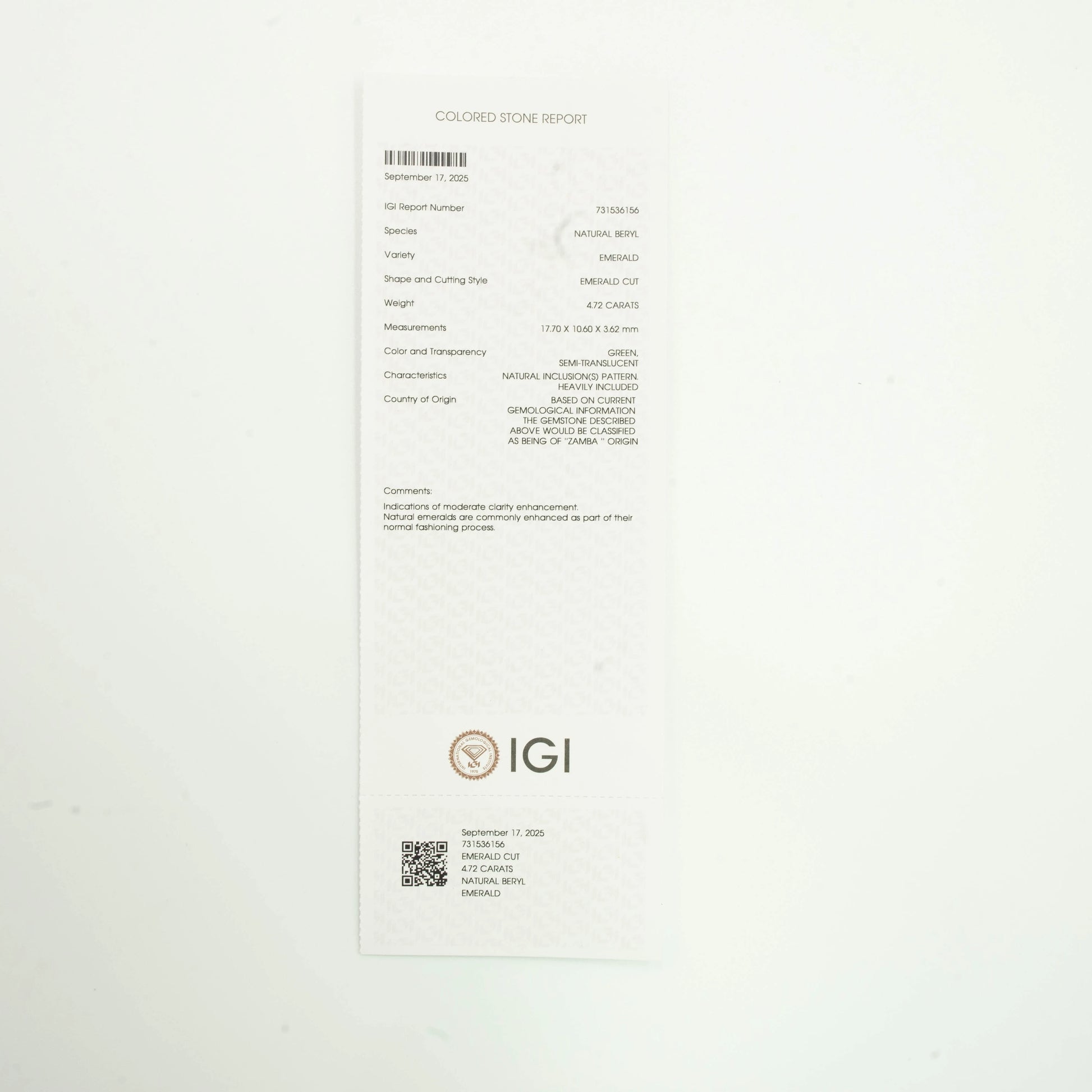 This exquisite Natural Emerald (Panna) weighing 4.72 carats displays a captivating green tone that symbolizes clarity, growth, and prosperity. Its naturally formed inclusions authenticate its origin and enhance its distinctive charm. The gem’s refined transparency and elegant polish make it a remarkable choice for both spiritual and ornamental purposes.