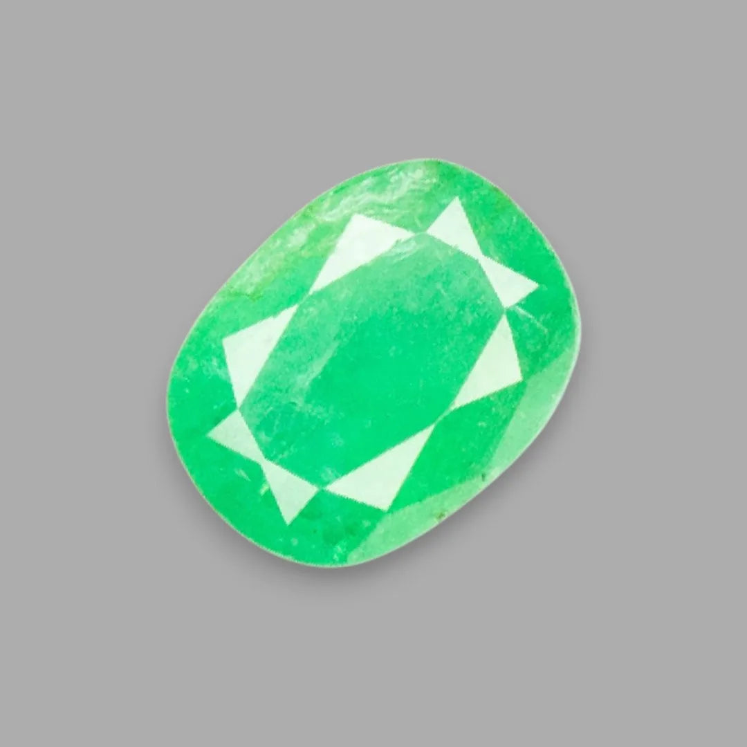 Mined from the gemstone-rich lands of Zambia, this emerald is ruled by planet Mercury (Budh) and is believed to bring intelligence, creativity, communication skills, and financial growth to its wearer. Ideal for professionals and business owners, it promotes clarity of thought and emotional harmony.