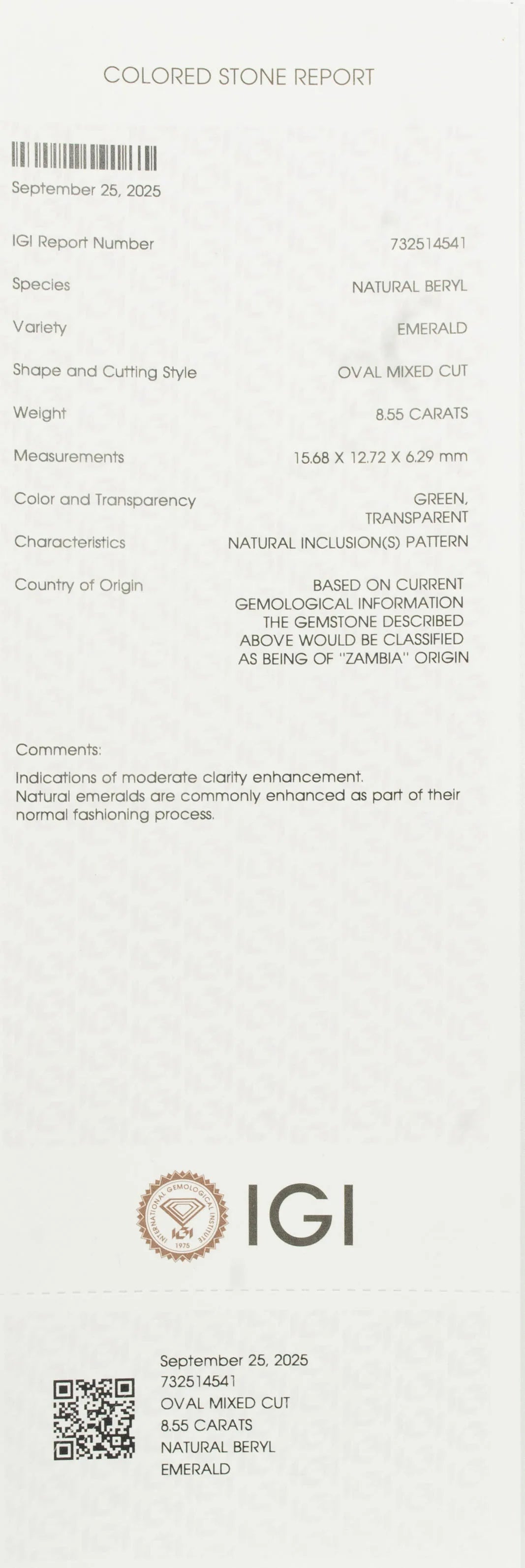 This exquisite Natural Emerald (Panna) weighing 8.55 carats embodies timeless beauty and astrological strength. Its lush green hue and precise Oval Mixed Cut highlight the gem’s natural brilliance and depth, while visible inclusions confirm its authenticity and organic origin.