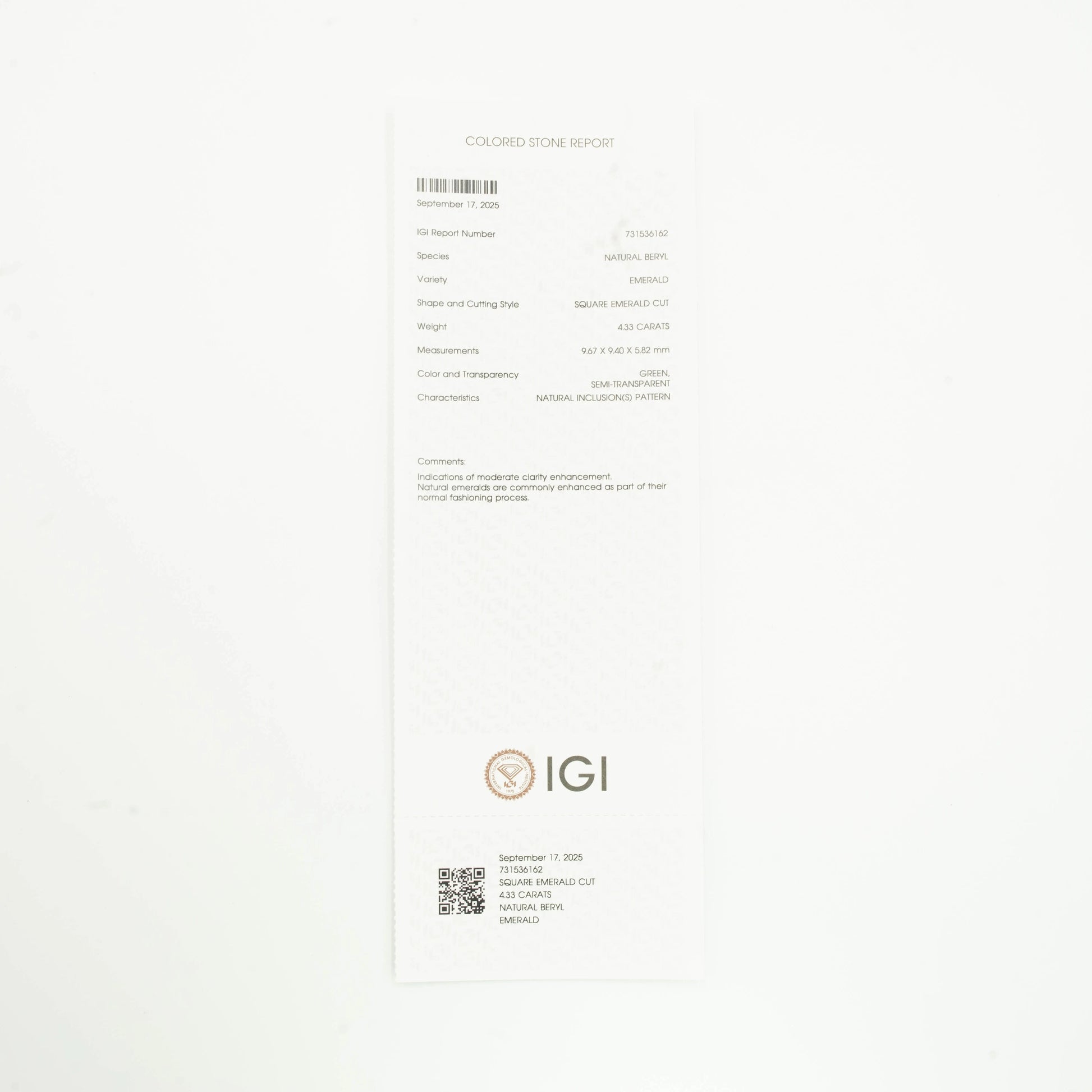 Natural Emerald Square Emerald Cut - 4.33 Carats