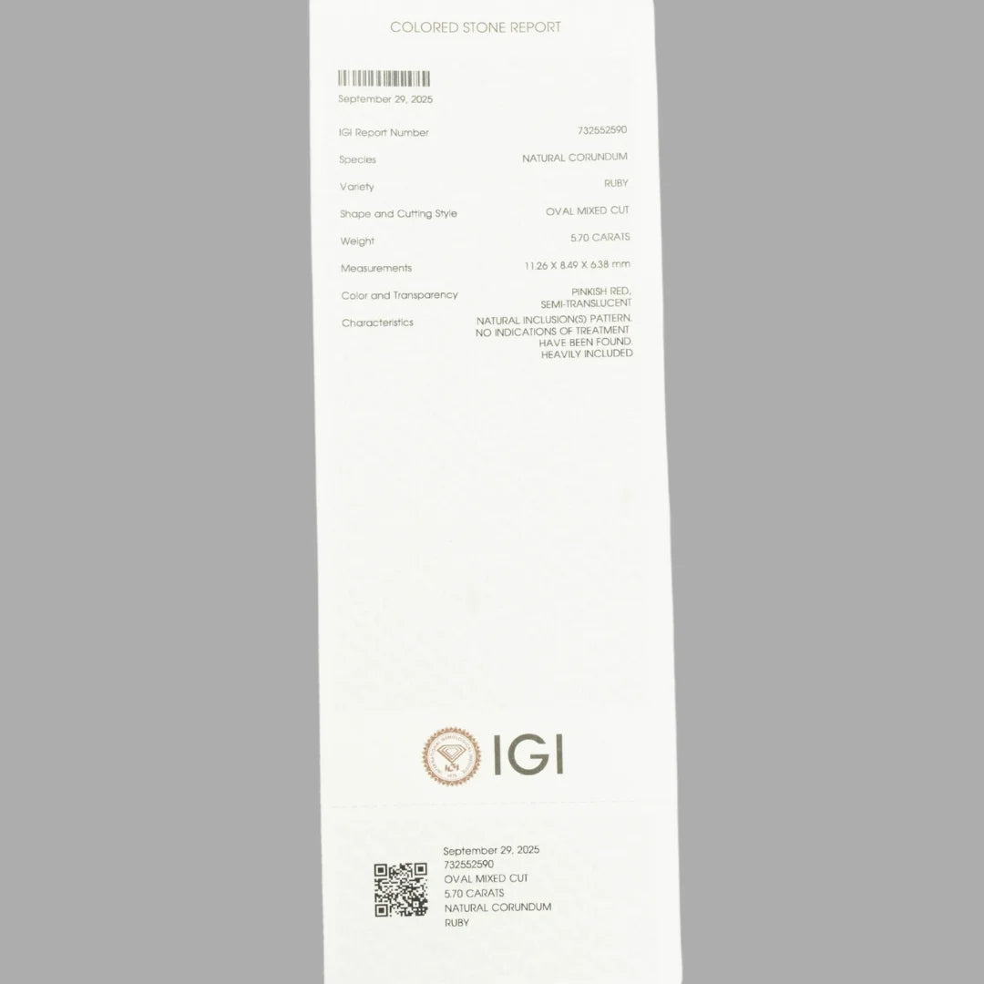 This exquisite Natural Ruby (Manik) weighing 5.70 carats features a beautifully crafted oval mixed cut, designed to maximize its brilliance and fiery inner glow. The gemstone showcases a rich, vivid deep red color, symbolizing power, vitality, confidence, and authority. With its impressive clarity and vibrant luster, this Ruby stands out as a premium choice for both astrological benefits and luxury jewelry.